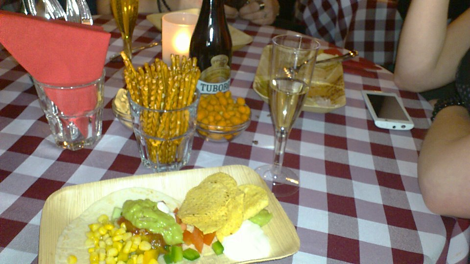 På den här stammisfesten så var det jättemkt folk, trots att det var en tisdag. De hade satt upp guld-drapperier och man fick champagne då man anlände och man fick öl-biljetter;)