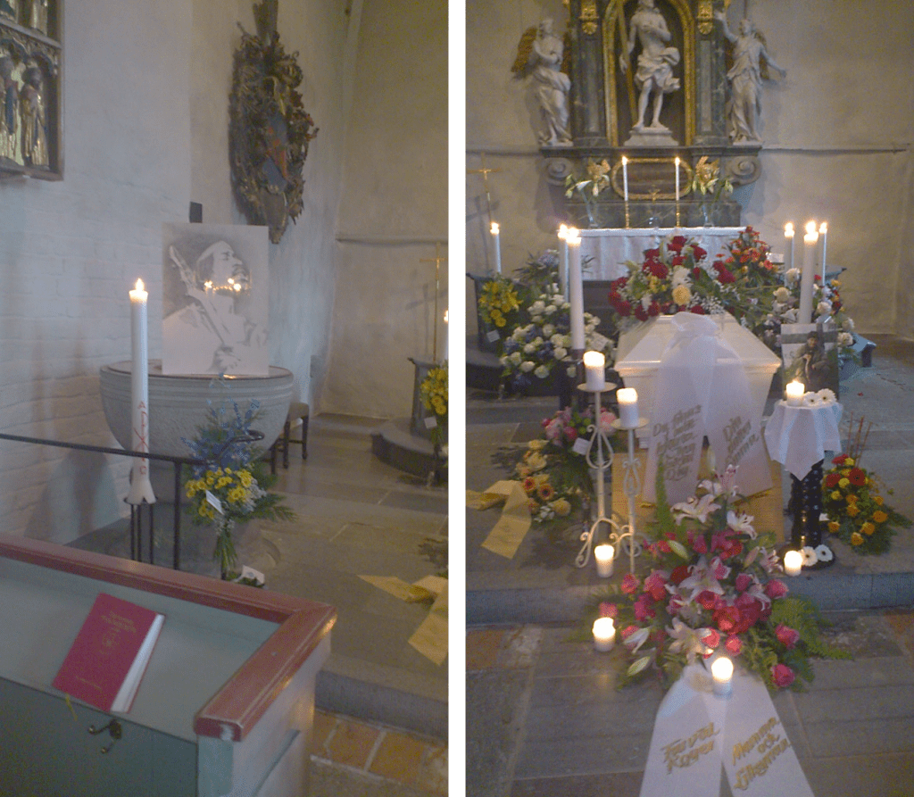 Vänner stod hela vägen ut till dörren. Alla gick fram till kistan för att ta farväl, samtidigt som kantorn spelade ”Tears in heaven” på orgeln.