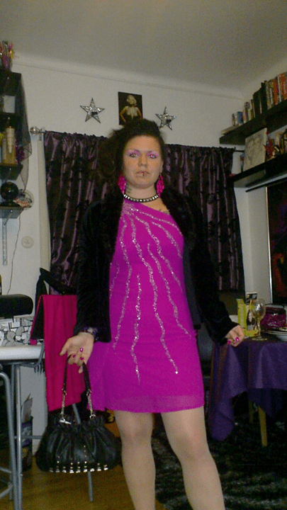 Sprayfärgen som inte skulle färga, enligt frisören, färgade som fan! Så jag fick hitta på en ny frilla i sista sekunden också, för att inte bli helt svart på både klänning och rygg!