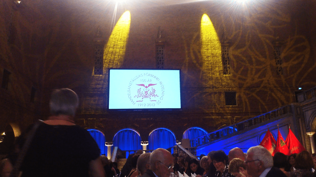 Där samlades en massa ombud, ombudsmän, och handelsanställda. Under kvällen så fick vi lyssna till vår fackliga historia, på ett humoristiskt sätt, med hjälp av Sissela Kyle.