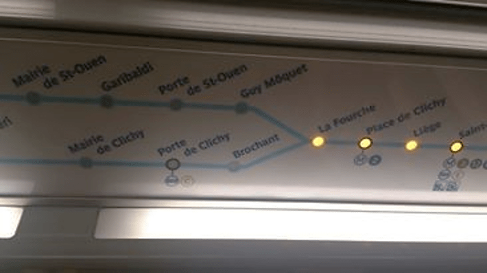 Precis som i sthlms t-banevagnar, om ingen rivit bort klisterlappen, så sitter det kartor på linjen. Men istället för att ha en karta på alla linjer så är det endast en karta på den linjen man är på, och när man närmar sig nästa station så börjar stationens lampa att blinka på kartan.