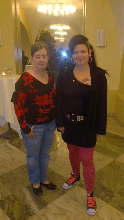 På väg till filminspelning!;) Jag tog med min svägerska på filminspelning på fotografiska museet en kväll intill natten. Vi skulle vara uppklädda med mkt smink och rött läppstift.