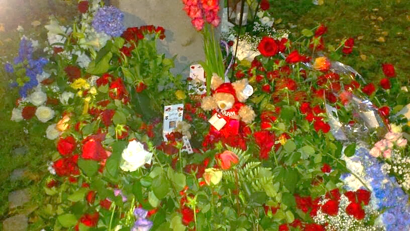 Två personer vakade vid sidorna av hennes gravsten med varsina fanor, och framför hennes gravsten låg en stor hög av blommor och kort!