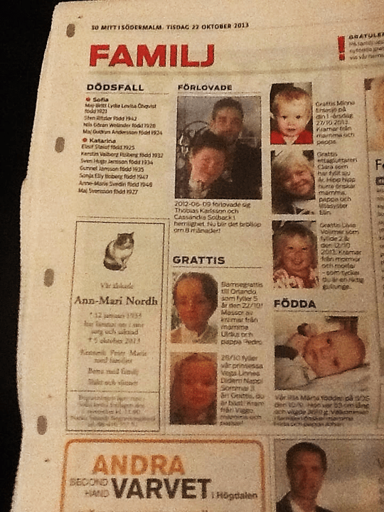 Vi har nu äntligen kunnat sätta ut vår förlovningsannons i tidningen, efter mer än ett års tid! För oss är detta riktigt skönt att nu kunna göra, mer än nog de flesta kan förstå! Och vi slipper nu lämna annonssidan i vår fina bok tom!