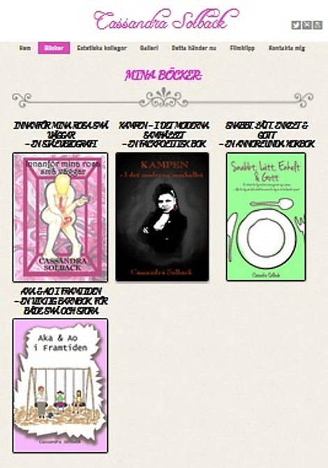 Där kan du läsa om mina böcker, se vart du kan köpa dem, läsa om det senaste för mig personligen på bokfronten, titta i mitt bildgalleri, skriva i min gästbok och mycket mycket mer!