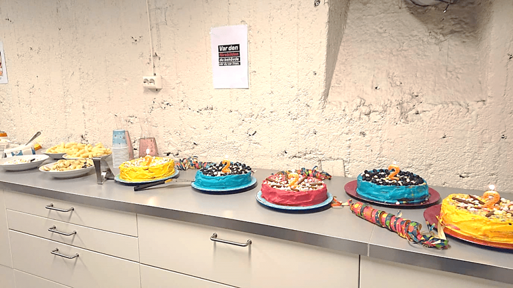 Vi bakade alla tårtor själva i år, bjöd på vegansk glass, sockerfri saft till barnen, kaffe och te för de vuxna. Runt i vår föreningslokal där vi hade kalaset hade jag satt upp citat och bilder från Herr Fröken från Instagram. Gå in och kolla så förstår ni vad det handlar om!;)