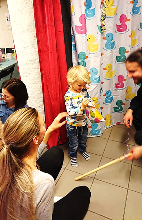 Kalaset avslutades med fiskdamm med ”Godispåsar” som innehöll gnuggisar, klistermärken, en liten dinosaurie och fruktgodis.