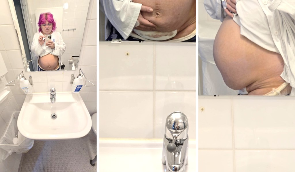 De tar lite extraprover och vi gör oss sedan redo att åka hem. Vi får vänta ett tag på mitt läkarbesök bara – de skall undersöka en öm knöl på magen. De kom inte fram till något gällande knölen. Thobbe fick även lära sig hur han skulle ta sprutor på mig i benen – för likt förra gången, så ville de att jag skulle ta sprutor en gång om dagen i sju dagar för att minska risken för blodpropp, pga mitt BMI (inte alls ålder denna gång, då de släppt den biten).