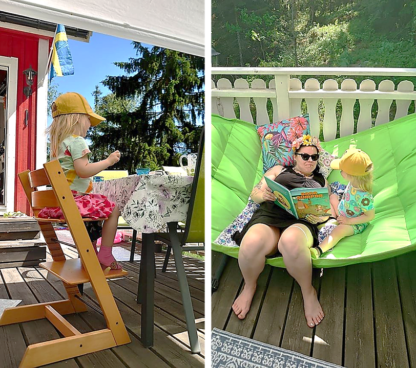 Ja, jag e oduschad, osminkad och har gråa hårstrån – så ser jag ut – detta är en relativt ofiltrerad blogg, tål du inte det får du hitta en annan!;) Jag befinner mig just nu ute på vårt landställe Landet Paradiset, tillsammans med min älskade familj bestående av min make Thobbe och vårt barn Jiro. Jag älskar att vara här ute och kan ofta andas ut något sånär när vi e här. Men nu står jag inför en stor utmaning – något läskigt – en brant eller kanske ett stup, vad vet jag, det återstår väl att se! Om två veckor blir jag utan jobb. Jag vill inte säga arbetslös för en ”sådan som jag”, alltså en kreativ själ, är sällan arbetslös – men vi får inte alltid betalt för allt vi gör och antar oss! Jag blir alltså utan jobb med fast inkomst och kommer att, för första gången i mitt 34-åriga liv, att behöva registrera mig på Arbetsförmedlingen och att söka ersättning hos A-kassan och ta del av Fackets inkomstförsäkring. Jag trodde inte att jag skulle hamna här och det kanske får mig att låta något självgod, men det jag menar är just att jag är en kreativ själ, som sällan kan sitta still och som älskar att jobba! Att jag skulle blir utan inkomst är något helt nytt för mig. Men vi lever i en oviss tid just nu. En tid som är ny för hela världen – även fast vi borde ha varit beredda på den och förberett oss för länge, länge sedan! Trots att i princip allt nu tyder på att jag kommer att hamna där – i ovissheten – där myndigheter styr över mig och min framtid – något som inte ger mig något annat än ren panik, så är jag helt säker på vad jag vill och har tydliga mål.