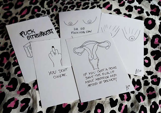 Något av det senaste är våra första feministiska örhängen i rosa plexi med nickelfria ringar och krokar! Det är Thobbe som har designat dem och jag som bygger ihop dem!;) Så stolt över dessa och vår förhoppning är att kunna skapa en hel del olika örhängen framöver, men som sagt att driva eget är ganska så tufft just nu då konsumtionen gått ned rejält!
