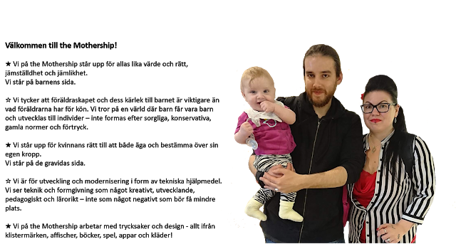 Om vi då börjar med familjeföretaget the Mothership så ´har vi försökt att förtydliga företagets områden och syfte. the Mothership är företaget som tror på allas lika värde och rätt, som är för genusmedvetenhet, som tror på att kärlek till ett barn ifrån vuxna är viktigare än vilket/vilka kön dessa vuxna har, som tycker att vi måste värna om vår miljö – tänka klimatsmart och äta växtbaserat, som tycker att köndfördelade barnkläder och leksaker hör hemma på 1900-talet, som är för teknik och utveckling, som är feminister och som tycker att det är kul med normkritisk och ställningstagande inredning!;)