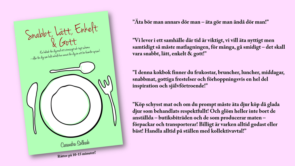 en kokbok helt rätt i tiden. Den är för dig som har en stressig vardag, har många järn i elden – eller helt enkelt bara har vettigare och roligare saker för dig än att bo framför spisen!