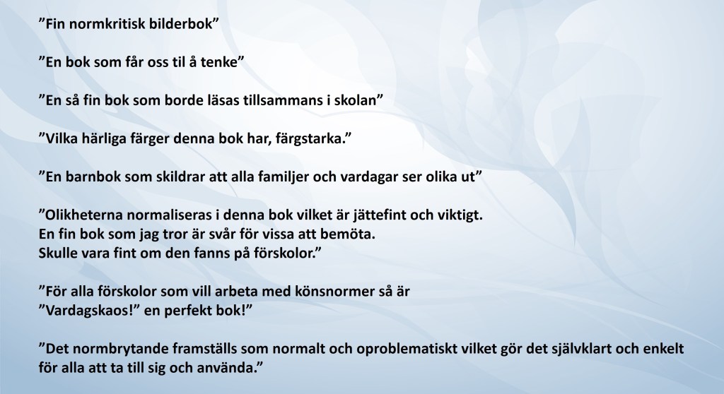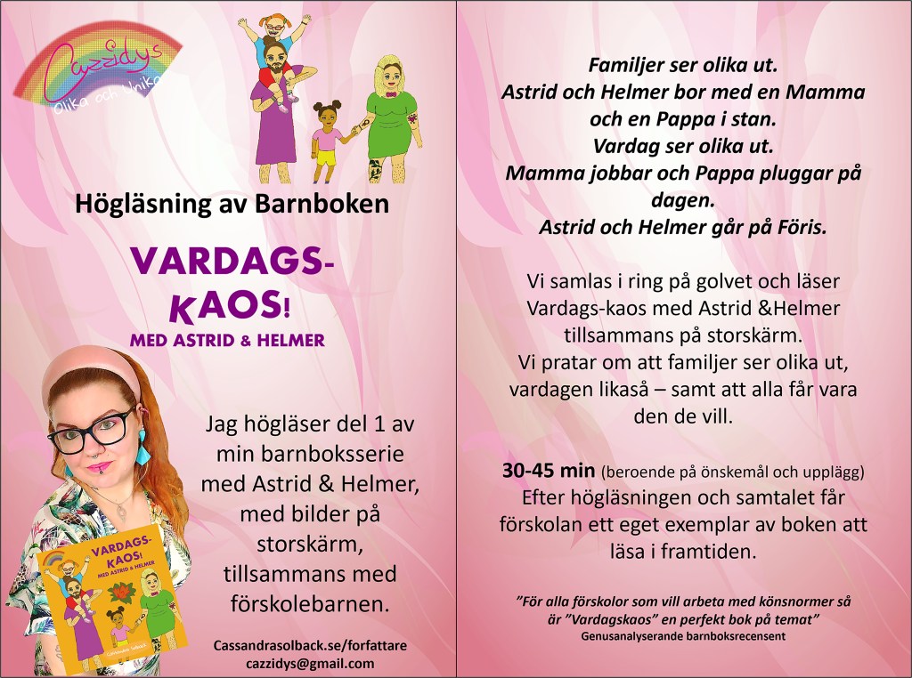 Barnboken Vardags-kaos med Astrid & Helmer, är en normkritisk bok med fokus på att alla är olika och unika. Boken är för barn mellan 3-6 år, men upplägget och tankesättet är minst lika viktigt för vuxna.
